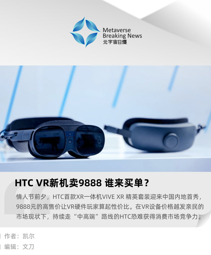相比之下,一套VIVE XR 精英套装的售价足足是另两大流行产品的3.5倍多。尽管有“XR一体机”的产品定位作“滤镜”,但高昂的售价仍可能浇灭消费者想尝鲜的热情。