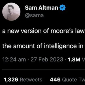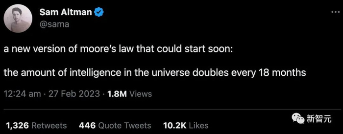 近日,「ChatGPT之父」Sam Altman在社交媒体称:一个全新的摩尔定律可能很快就会出现,即宇宙中的智能数量每18个月翻一番。
