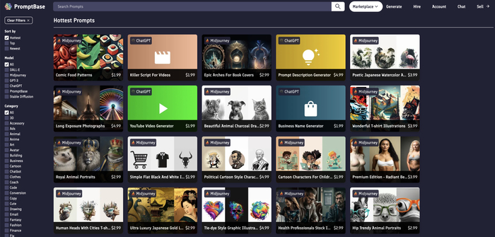 PromptBase 是一个针对 DALL·E、Midjourney、Stable Diffusion 和 GPT-3 等模型打造的 Prompt 交易市场。你可以将来自这些平台的 prompt 及其生成的图像上传到该平台,为该 prompt 设定出售价格,但卖家购买之后将可以获得这个prompt的细节。用户将获得售价的 80%,剩余部分将归平台所有。prompt 真的有交易需求吗?这个市场的未来前景还有待观察。