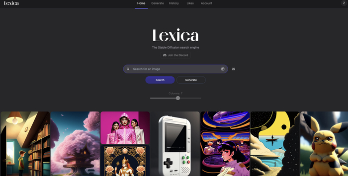 lexica 也是一个专注于 Stable Diffusion 模型的 prompt 搜索引擎,其搜索方式非常简单,类似于 Krea,没有 PromptHero 那样的分类搜索功能,但 lexica 能够展示搜索结果数量。除此之外,lexica 还提供了 AI 图像生成功能,用户可以对图片的 prompt 进行重新编辑并生成新的图片。