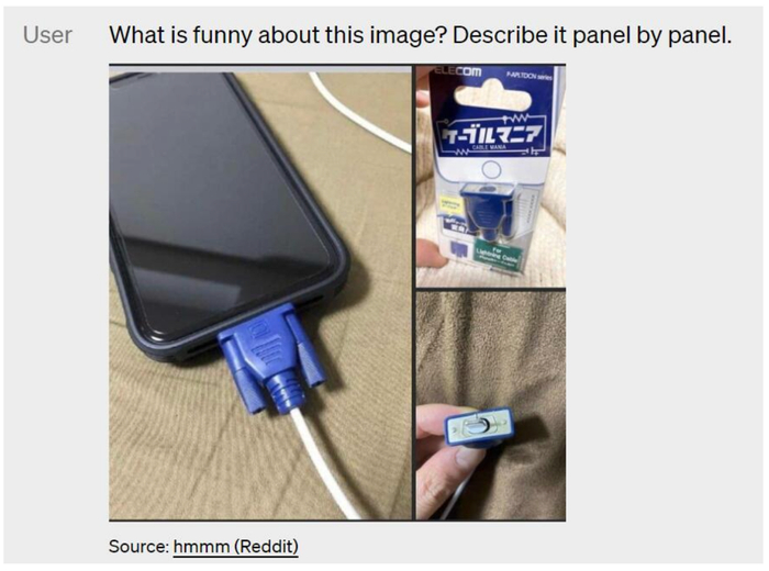 在新的GPT-4上,产品不仅拥有了更高的回答准确率,同时能够生成歌词、创意文本并实现风格变化,但最大的升级显然是增加了强大的“识图”能力,允许用户指定任何视觉或语言任务,例如分析一张图片的“笑点”与“梗”。