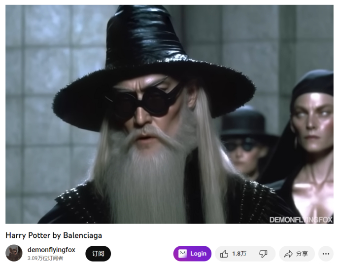 这甚至不是上周唯一一个与巴黎世家有关的 AI meme 病毒。一个名为 demonflyingfox的创作者一直在使用Midjourney图像、ElevenLabs语音和D-ID动画来制作超现实的、由AI驱动的搞怪视频。他传播最广的视频是“Harry Potter by Balenciaga”,这是一则高级时装风格广告,其中合成的人物形象说着:“You are Balenciaga,Harry”之类的话。