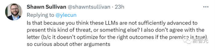 有网友表示,我也不同意这封信,但我很好奇:你不同意这封信的原因,是觉得LLM不够先进,根本威胁不到人类吗,还是其他原因?