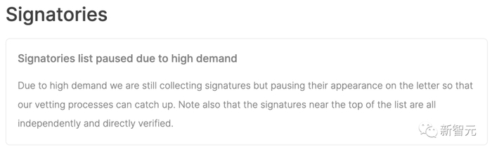 由于签名太过火爆,团队决定暂停先暂停显示,以便让审核可以跟上。(名单顶部的签名都是直接经过验证的)