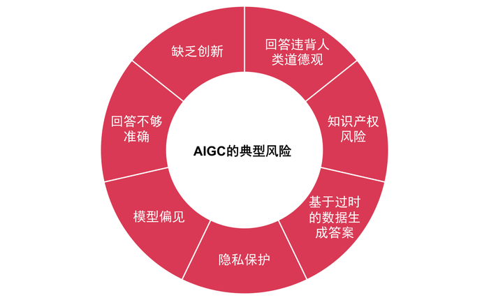 当前,各种AIGC服务仍存在不成熟的方面,用户在使用过程中会发现各种问题和错误。尝试使用ChatGPT时,用户也可发现它更擅长文科类的话题,对理科类的回答正确率较低。新闻报道也显示,在某些对话场景下,AI会生成奇怪的、甚至违背社会道德常理的对话内容。有用户向ChatGPT提问AIGC的风险是什么,ChatGPT则回答了七个方面:回答不够准确、缺乏创新、违背人类道德观、知识产权风险、基于过时数据生成答案、隐私保护和模型偏见。这些风险大部分与数据安全相关,特别与数据准确性、数据保密性和数据合规性密切相关。