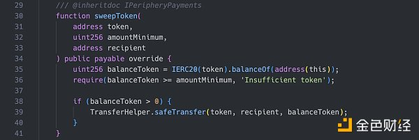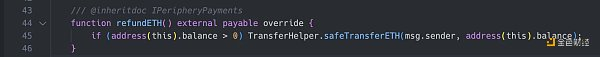 Uniswap V3 的 SwapRouter 合约中也会存在和 Uniswap V2 Router 一样的情况,存在 ERC 20 代币和 ETH,但是幸运的是 SwapRouter 合约提供了几个函数可以方便提取其中的代币。