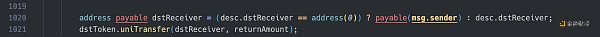 最后会将合约中的 dstToken 余额都转到 dstReceiver 地址中,该地址也由用户控制: