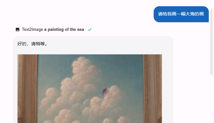 通过调用相关插件,MOSS也拥有了AI绘画的本领。《科创板日报》记者提出“请帮我一幅大海的画”,它自主调用text2image插件,生成了一幅对应内容的画。