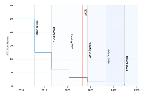 鉴于比特币区块奖励从 50,到 25,到 12.5,到 6.25 依次减半,这个过程和时间表被称为比特币区块奖励减半。