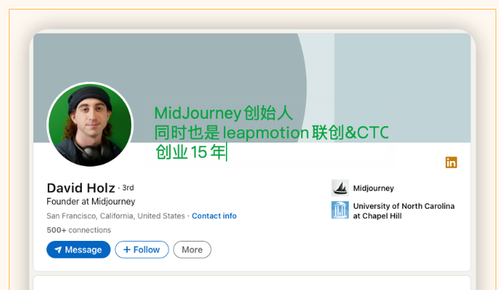 虽然 Midjourney 在不融资的情况下就实现了盈利,但从创建的背景来看,创始人大卫・霍尔茨(David Holz),并不像那种钻进钱眼里的人。