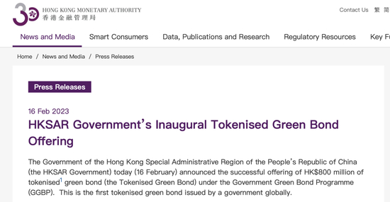 以绿色债券代币化为例。2023年2月16日,港府宣布香港成功发售8亿港元的代币化绿色债券。这是第一只循香港法律制度发行的代币化债券,亦是全球首批只由政府发行的代币化绿色债券。为审慎起见,此次绿色债券代币化没有直接在链上发行,而采用上述第一类RWA代币化方式,即首先将债券存放在香港债务工具中央结算系统(CMU),然后对债券进行代币化。即便如此,相较于传统发行模式,代币化绿色债券依旧显著提升了发行效率,将交收程序从5个工作日(T+5)缩短至1个工作日。