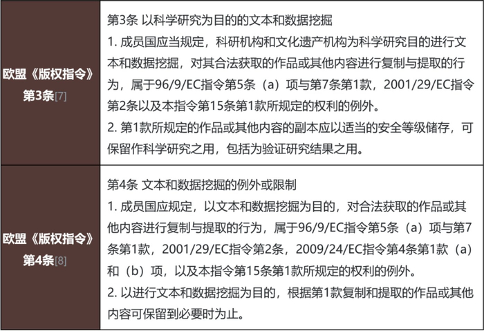 欧盟委员会在2016年9月公布了《欧盟数字化单一市场指令》提案,随后于2019年3月通过了《数字化单一市场版权指令》(下称《版权指令》),对TDM的使用制定了版权例外规则。