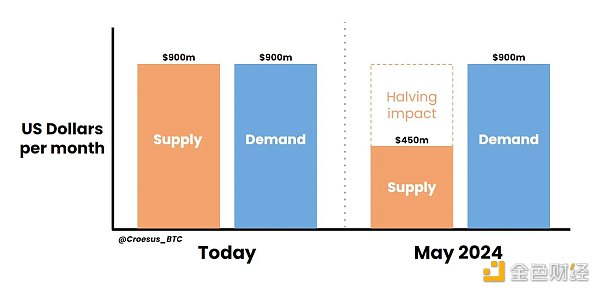 每个月将只有4.5亿美元的比特币被创建,但需求却有9亿美元。这是一个有保障的、可预测的、可靠的供应短缺。它将从2024年4月开始。