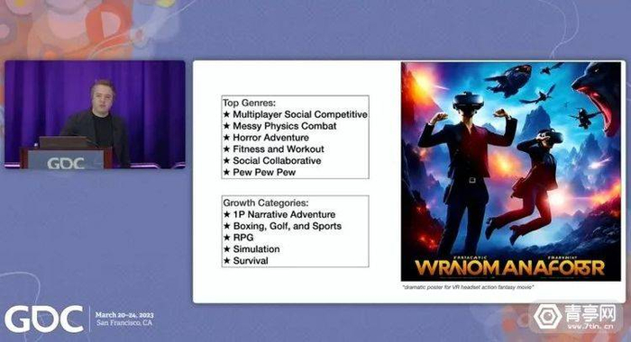 Meta内容生态总监Chris Pruett,在GDC 2023向开发者们分享了对于VR现状、Quest商店的发展策略等话题的看法,以及当下最受欢迎的VR游戏的种类。
