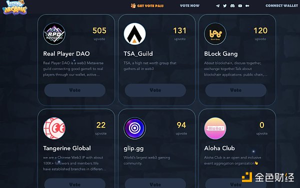 对于公会来说,通过参与竞选活动,可以增加公会的曝光率,提高公会的影响力和用户数量,而对于项目方来说,通过这个活动,可以鼓励用户积极参与社区活动,增加用户活跃度,而且公会在拉票时的推广和宣传,游戏可能触达更多新的用户。