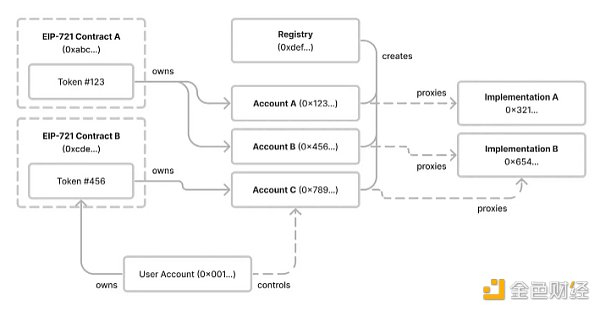 ERC-6551引入的系统主要由两部分构成:用于部署代币绑定帐户的无许可注册表和用于与这些帐户交互的标准接口。