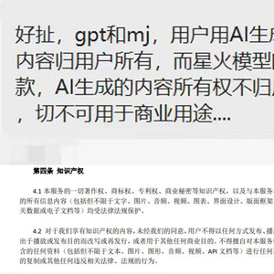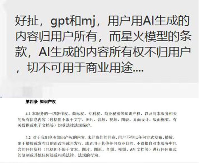 前几天,有人发现讯飞的“星火认知大模型”官方体验平台SparkDesk在用户协议中有一条令人不解的规定: