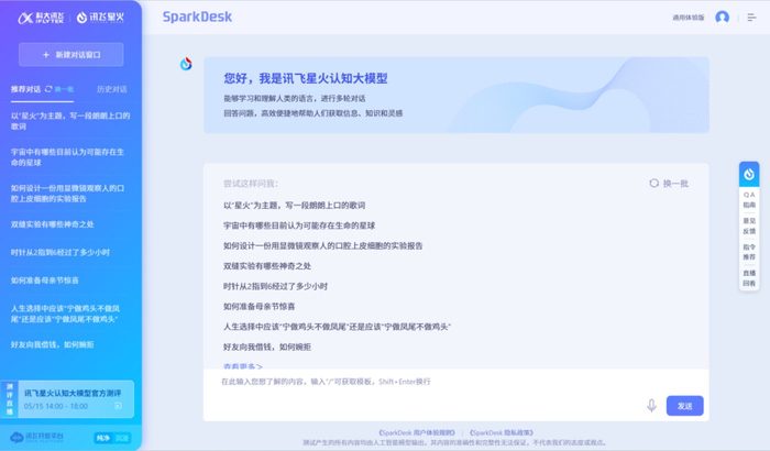 鉴于SparkDesk服务目前处于体验阶段,SparkDesk的有关计算机程序、代码、技术数据、系统及应用软件、数据库、算法、交互界面(包含输入和输出内容)、产品设计、产品发布与规划信息等技术信息或商业信息属于保密信息。
