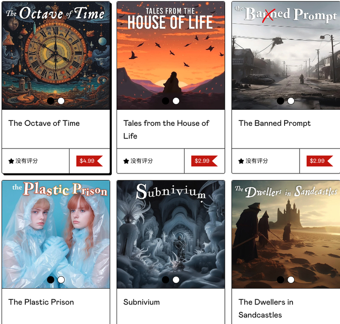 不过,和我们想象的有些出入,Tim Boucher 出版的电子书籍每本书只有 2000-5000 字和 40-140 张人工智能生成的图片。