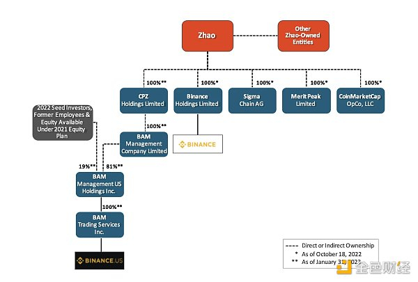 证监会文件显示,赵长鹏本人通过多种直接或间接的股权结构控制币安和Binance.US平台,尽管该平台声称具有相当的独立性。图示如下: