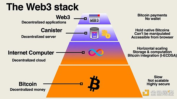 比特币网络仍然保持着作为更加去中心化和安全的基础层的地位。它主要用于存储较大金额和较大的组织。个人可以持有比特币储蓄账户,同时依靠互联网计算机进行日常交易。也许对于大多数人来说这部分甚至被抽象掉了。