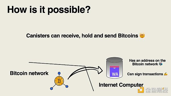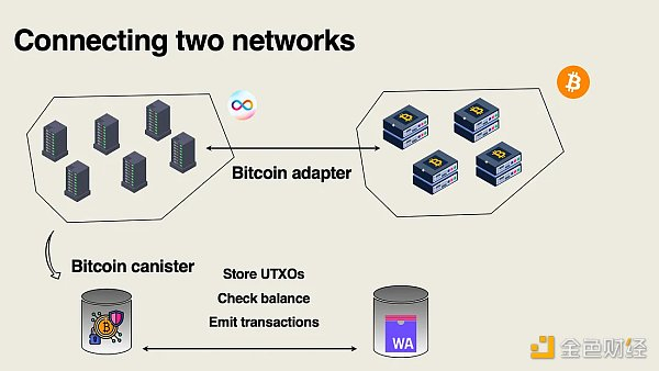 在互联网计算机中,有一个称为比特币子网的专用子网,其中每个节点都连接到世界各地随机选择的比特币节点。此子网为比特币罐提供动力。比特币罐是“区块链中的区块链”,基本上它跟踪比特币区块链在任何时间点的状态,并使互联网计算机上的所有其他罐都可以访问此状态。
