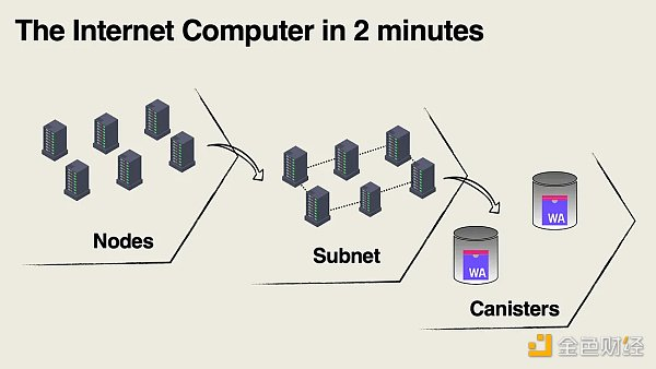 互联网计算机由分布在全球的节点集合组成。所有节点都在运行互联网计算机协议 (ICP) 并形成子网。这些子网托管容器。容器是一个分散的服务器。您可以在其上存储网站,代币,金融应用程序甚至游戏。容器是安全的,并且始终运行,即使子网中的某些节点是恶意的或关闭的。这背后的聪明的密码学和工程学值得自己写一整篇文章,但让我们今天保持简短。