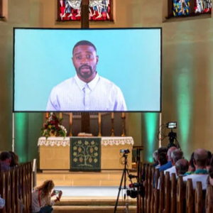 ‘亲爱的朋友们,我很荣幸站在这里,作为一个人工智能向你们宣讲’,教堂中央的巨大屏幕上,一个 AI 生成的蓄着胡须的黑人形象,正在向面前的 300 多人布道。