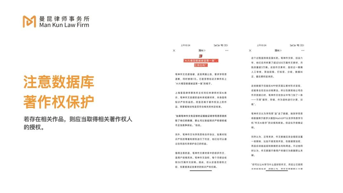 一方面,当我们去整理大量的数据和素材来作为机器人训练数据库的时候,一定要注意有没有侵犯原有著作权人的权利。