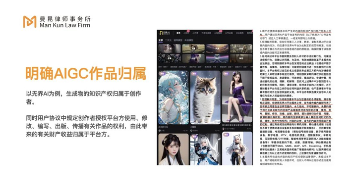 1.知识产权方面,不仅要在用户协议中明确约定AIGC版权归属谁,更要确保自己的素材库不侵权。