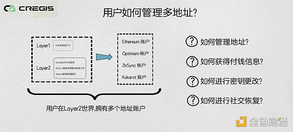 Web 2.0 与 Web 3.0 相比,有一样优势至今依然保持:用户可以用一个社交特征(电子邮箱、手机号码等)创建不同的应用账户,虽然 Web 3.0 世界中,相同共识机制的公链地址可以通用(例如:BSC、ERC-20、TRC-20),但随着 L 2 扩容方案的来临,用户将拥有多个完全不同的 L 2 地址,不同的 Layer 1 和 Layer 2 网络可能使用不同的编程语言和中间组件,这导致了地址保留方面的问题;而且在 Polkadot 为代表的多链桥接环境或以 Cregis 未来景愿中提及的多链通用的 L 2 环境落地前,用户亦可能需要管理若干个异构链的地址,这增加了地址管理的复杂性。