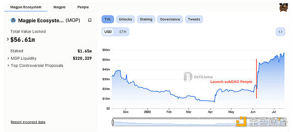此外 Magpie 专注在治理权赛道,与 subDAO 模式可以说是天作之合。该赛道 与 Perp 这类需要持续深耕的不太一样,在项目搭建起来后,后期工作相对较少,同质化也很高,做新项目基本上可以大量复用此前的工作。