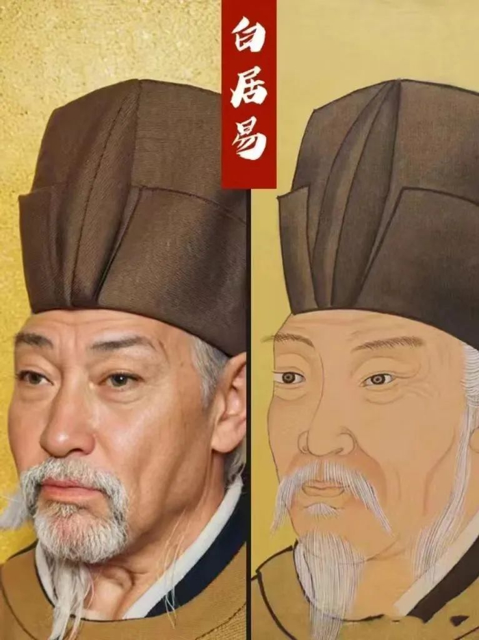被AI还原的白居易有着圆润的面容,明亮的眼睛,还留着络腮胡须,表情似乎有些严肃和忧虑,但也透露出一种智慧和慈祥。