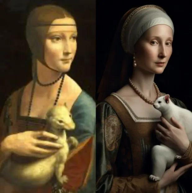 《抱银鼠的女子》是达·芬奇杰出的肖像画作品,也被AI还原的栩栩如生。