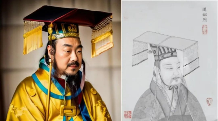 在AI还原的形象中,他的头发整齐地梳理,身着华丽的龙袍,双眼透露出坚定和聪慧。