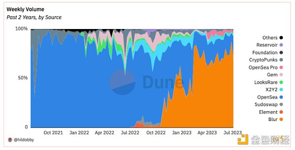 这个成功带来了竞争,首先是LooksRare,然后是X2Y2,Gem和Sudoswap,最后是Blur。