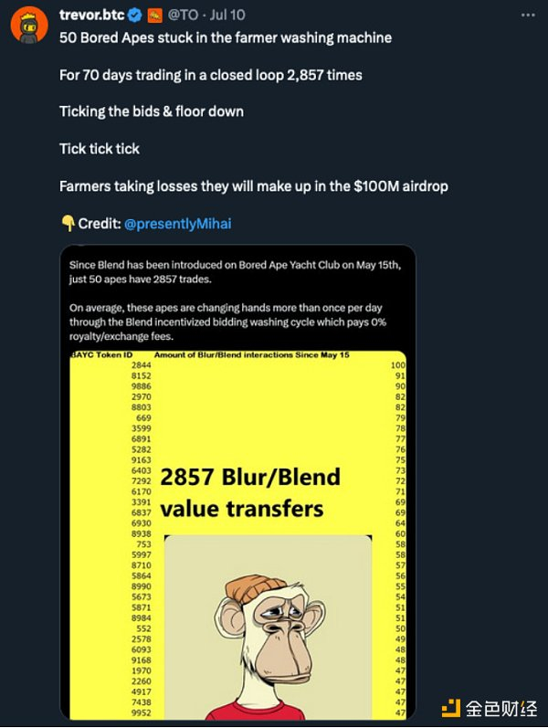 Blur 通过宣布第二季的激励措施来保持运转。参与者可以通过在 NFT 上上市和竞价来赚取积分。很自然,精明的用户想出了如何利用这个系统赚钱的方法。