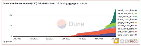 NFT 借贷市场在今年 4 月累计交易量超过 10 亿美元,最近在 Blur 推出其 Blend 平台后,最近在 6 月突破了 20 亿美元的门槛。