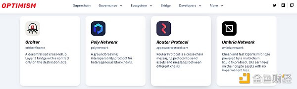 Optimism 也在生态的跨链桥细分项目里边推荐了 Orbiter 跨链桥。