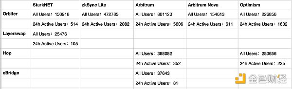 可以通过 https://www.orbiter.finance/data 查看一些跨链桥的活跃用户。