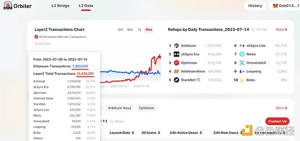除了跨链的功能,Orbiter 还推出了一个 L2 Data(数据看板)。