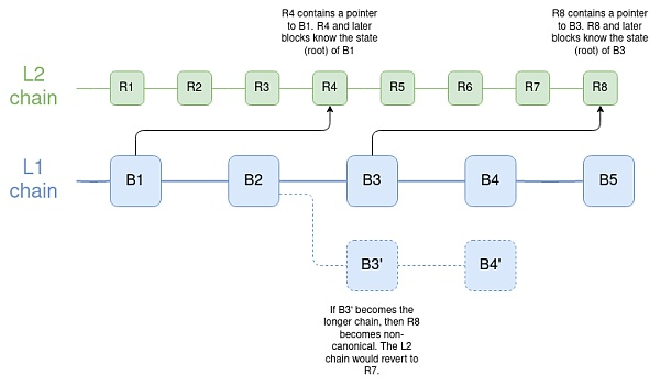 这里有两个主要的棘手的实现问题:「需要使用什么样的证据?(是默克尔证明吗?还是别的什么?)」以及 「L2 如何学习最近的 L1 状态根?」或者,「L1 如何学习 L2 的状态根?」