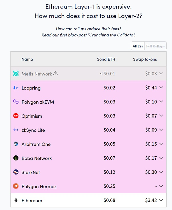 当下,如果是较为简单的发送操作,L1 网络上的成本大约是 L2 的 15~25 倍,而 Token 交换的成本则大约是 L2 的 20~50 倍。