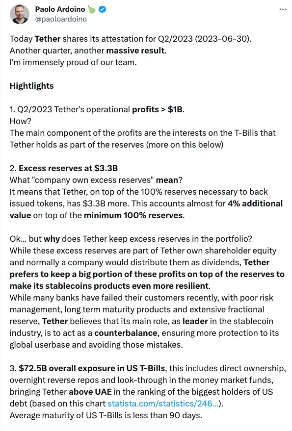 Tether 有望在今年赚取 40 亿美元的净利息收入。这比贝莱德的收入还要多。只需发行以美元计价的债务,每个金融科技公司和银行都应该发行自己的稳定币,对他们来说,这几乎是“免费”的钱。
