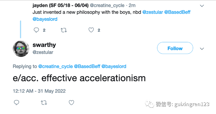 “有效加速”并不算是一个经过严密论证的概念,目前普遍认为其理论雏形主要源自英国保守派哲学家尼克·兰德在2018年所提出的理论,但当时对于加速的定义还比较抽象。大约在去年5月,几个Twitter用户开始共同撰写关于“有效加速”的内涵和规则,并在Spaces和Substack社区里进行了发布。