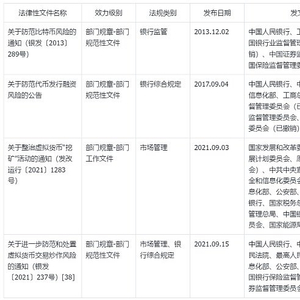 我国对于虚拟货币的监管政策主要为中国人民银行等部门发布的部门规范性文件。即: