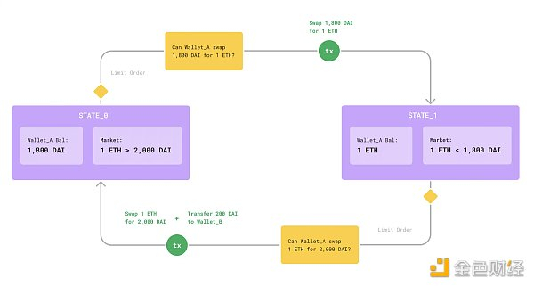 一个简单的多步骤 Intents 示例是经典的传统金融挂单套利交易。这些订单在复杂程度上可能有所不同,但简单的版本常见于传统金融交易应用程序中。基于 Web3 的可组合性和多步骤 Intents,我们可以进行非常强大的挂单套利交易。