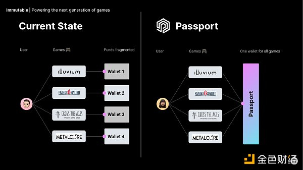 Immutable 正准备推出 Immutable Passport,这是一种解决当前与钱包相关的挑战并实现更好游戏体验的解决方案,目前处于测试阶段的Immutable Passport 支持无密码登录,并在用户开始玩游戏时自动生成钱包,从而大大简化了用户登录流程。用户还可以使用单个Immutable Passport钱包,在所有市场和游戏中交易加密货币。