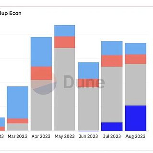 80万美金左右,Optimism生态一直处于不瘟不火的状态,三四月份Arbitrum生态的崛起使得同为OP赛道的Optimism也获得部分链上玩家的关注,而最近,由于Coinbase、BNB Chain,Worldcoin等项目相继选择基于OP stack发链 ,使得Optimism生态也连带受益,链上活跃度出现小幅增加。