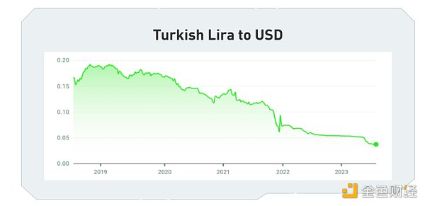 调查显示,土耳其成年人中的加密货币投资者显著增加。18 个月来, 18 至 60 岁的土耳其人中加密货币投资者的份额增长 12% ,从 2021 年 11 月的 40% 增长到 2023 年 5 月的 52% ,这表明土耳其民众对加密货币的兴趣和接受度越来越高。与此同时,土耳其官方货币里拉兑美元贬值超过 50% ,使加密货币成为抵御通货膨胀的避风港。